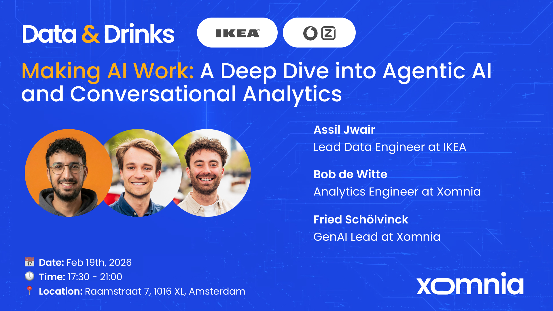 18:20 - 18:55: Talk 1 - Ask Your Data Anything: How IKEA Built Reliable Conversational Analytics with Multi-Agent AI by Assil Jwair, Lead Data Engineer at IKEA and Bob de Witte, Analytics Engineer at Xomnia