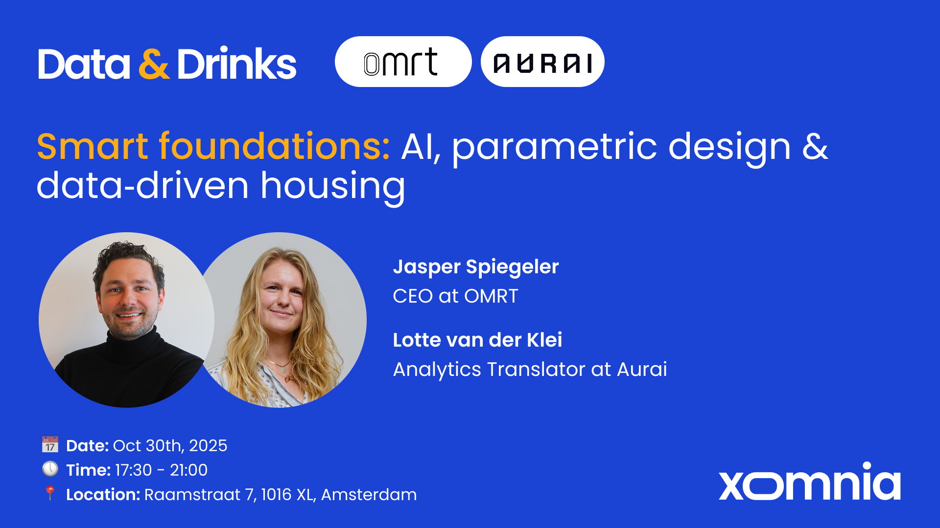 Join us for an evening of practical case studies and networking. Jasper Spiegeler (OMRT) demos parametric design, AI and HPC to generate and optimize thousands of greener design options; Lotte van der Klei (Woonstad Rotterdam/Aurai) shows how a central data platform and strategic data products speed decision‑making for social housing.