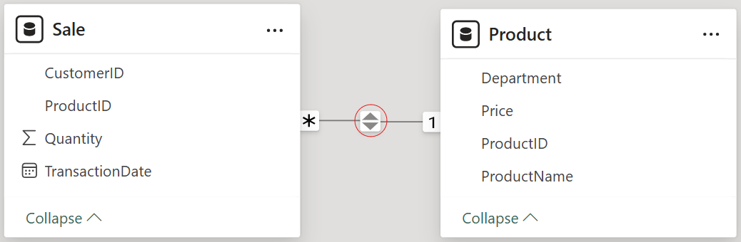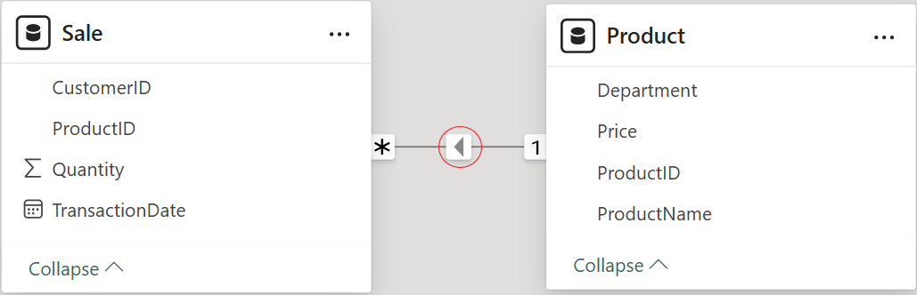 'Product'[ProductID] IN VALUES(Sale[ProductID])