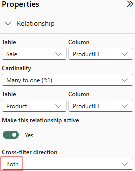 Now the easiest way to fix this is to click on the relationship properties and change the cross-filter direction to work in both directions.