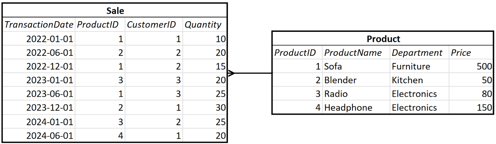 JOIN Product ON Sale.ProductID = Product.ProductID