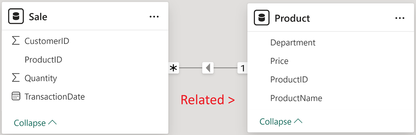 Notice how RELATED() retrieves a value from Product? We iterate over the many rows in Sale, because that allows us to create an expression with one Price per Quantity.