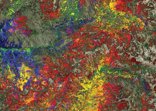 Let’s assume that our goal is to identify individual tree species. Then the labeling task for this problem would involve the identification of all the different tree species by a domain expert. These are all marked in this image by different colors.